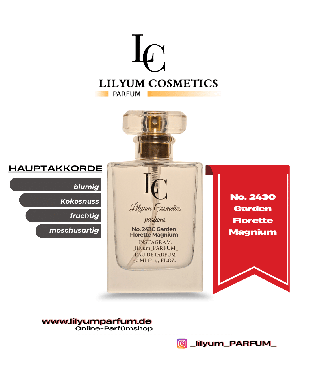 Alle Düfte von Lilyum Cosmetics sind eigenständig entwickelte Kompositionen. Es handelt sich weder um Nachbildungen noch um Fälschungen oder Kopien bekannter Marken. Lilyum Cosmetics steht in keinerlei Verbindung zu anderen Parfümherstellern oder deren Produkten. Unsere Düfte werden unabhängig entworfen und sind rechtlich eigenständig geschützt.