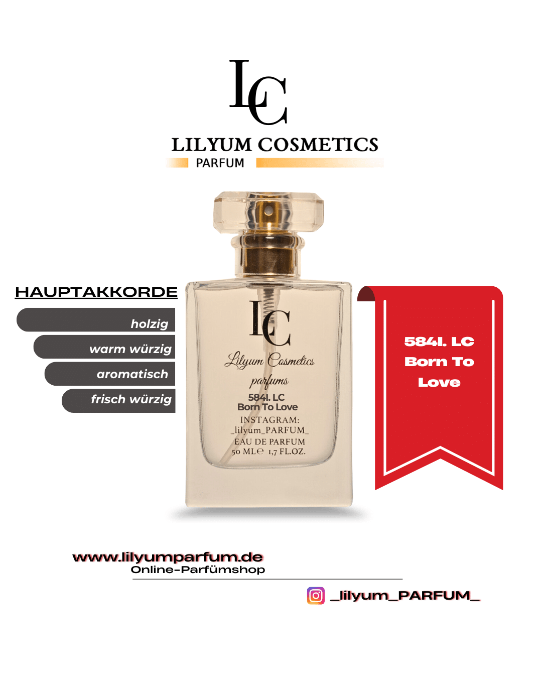 Alle Düfte von Lilyum Cosmetics sind eigenständig entwickelte Kompositionen. Es handelt sich weder um Nachbildungen noch um Fälschungen oder Kopien bekannter Marken. Lilyum Cosmetics steht in keinerlei Verbindung zu anderen Parfümherstellern oder deren Produkten. Unsere Düfte werden unabhängig entworfen und sind rechtlich eigenständig geschützt.